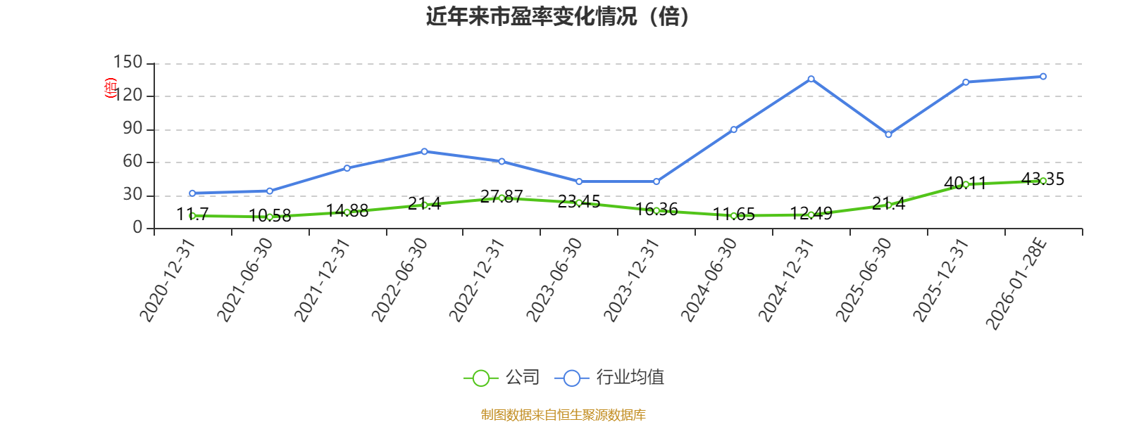 以本次披露业绩预告均值计算,公司近年市盈率(TTM)图如下所示: