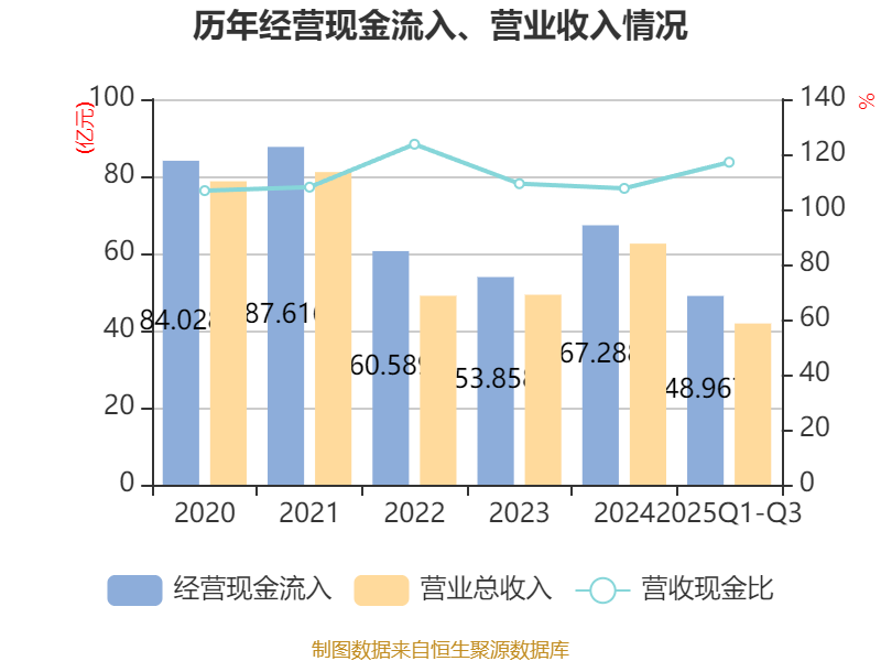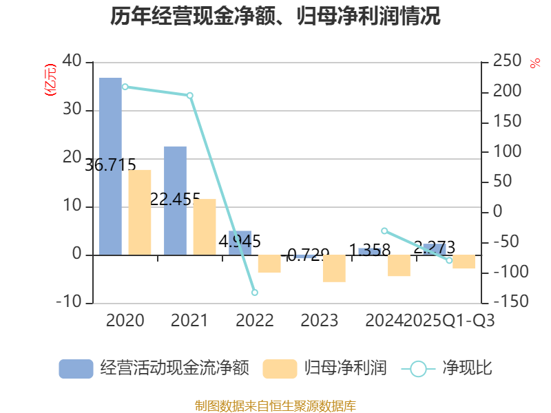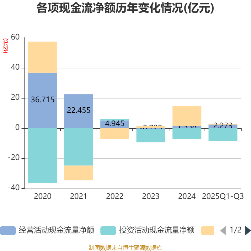 2025年前三季度,公司经营活动现金流净额为2.27亿元,同比增加2.96亿元;筹资活动现金流净额6291.79万元,同比减少15.47亿元;投资活动现金流净额-8.63亿元,上年同期为-6.61亿元。