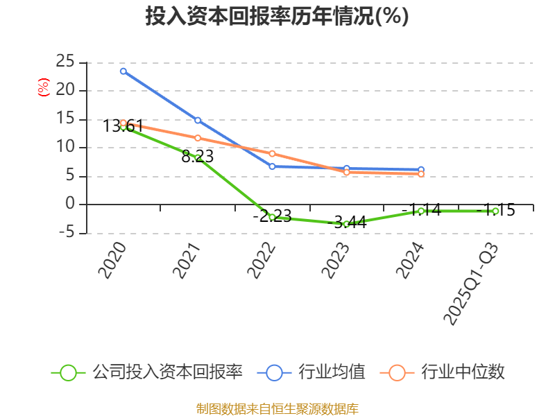 盈利能力方面, 2025年前三季度公司加权平均净资产收益率为-3.56%,同比下降1.17个百分点。公司2025年前三季度投入资本回报率为-1.15%,较上年同期下降0.94个百分点。