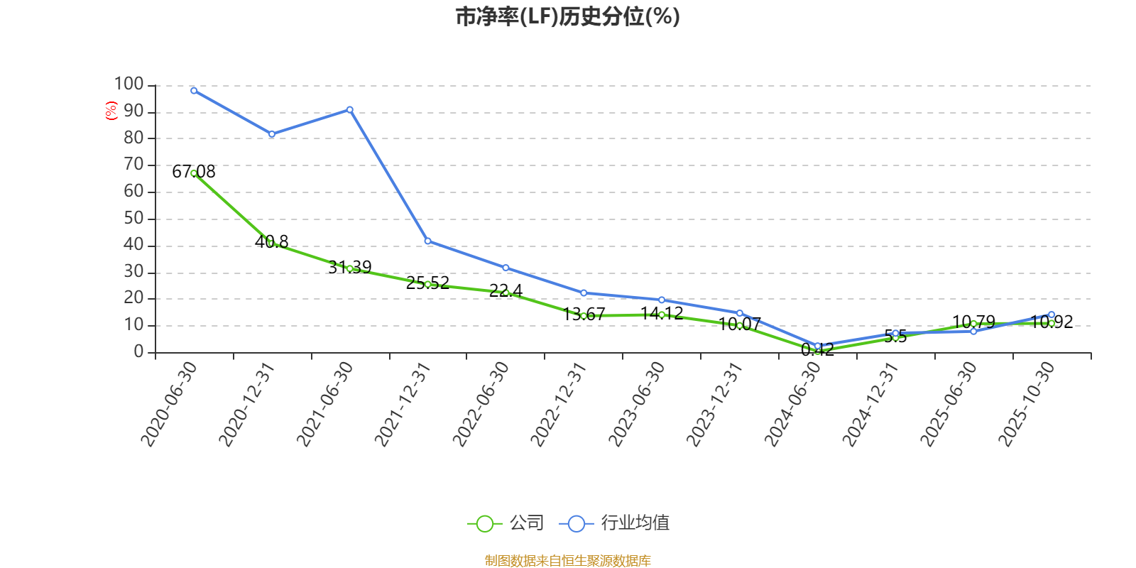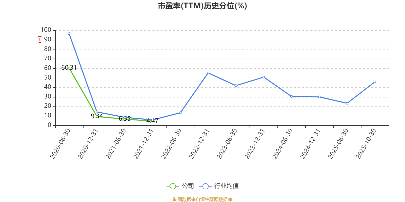 市盈率、市净率为负时,不显示当期分位数,会导致折线图中断。