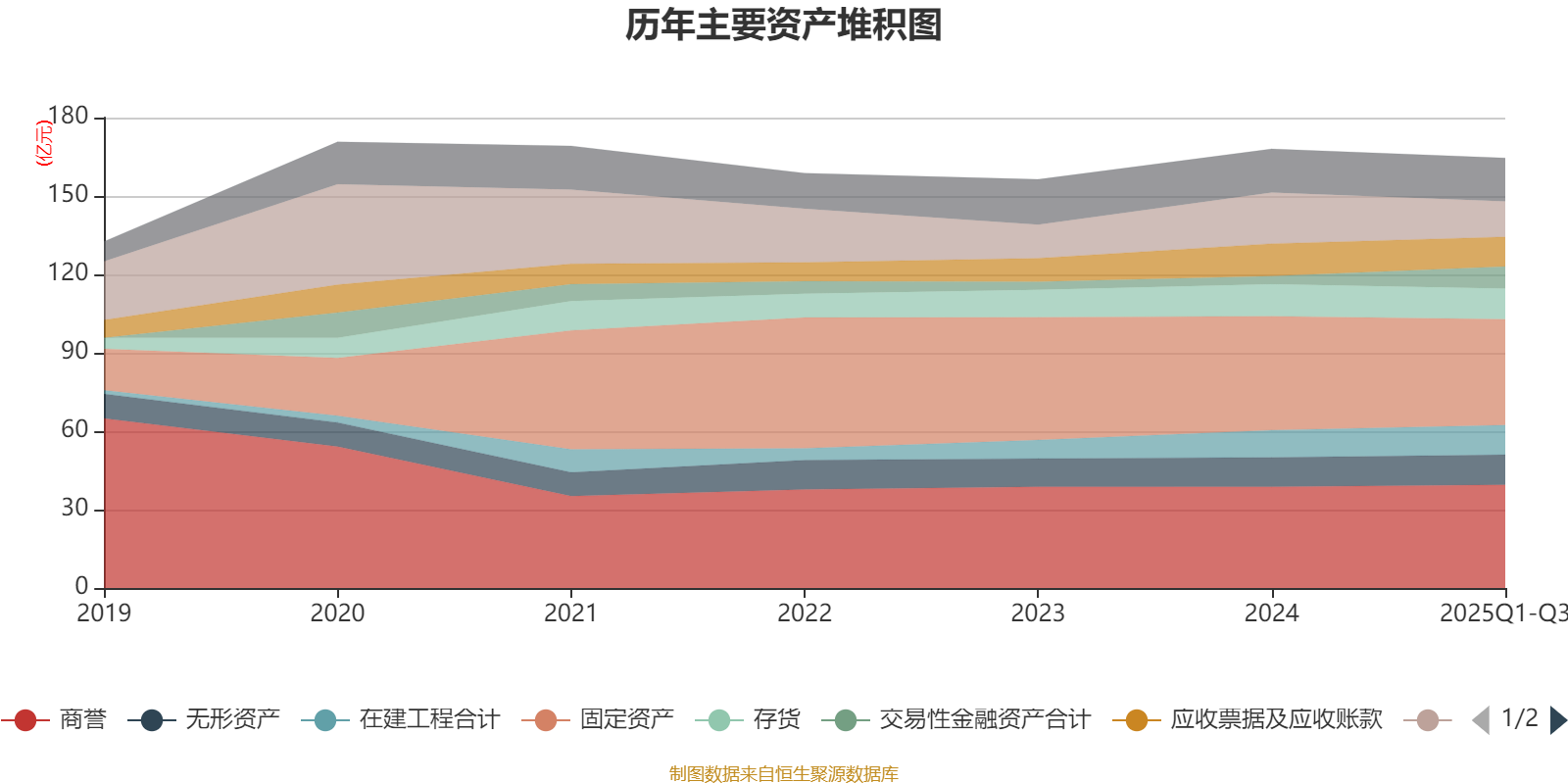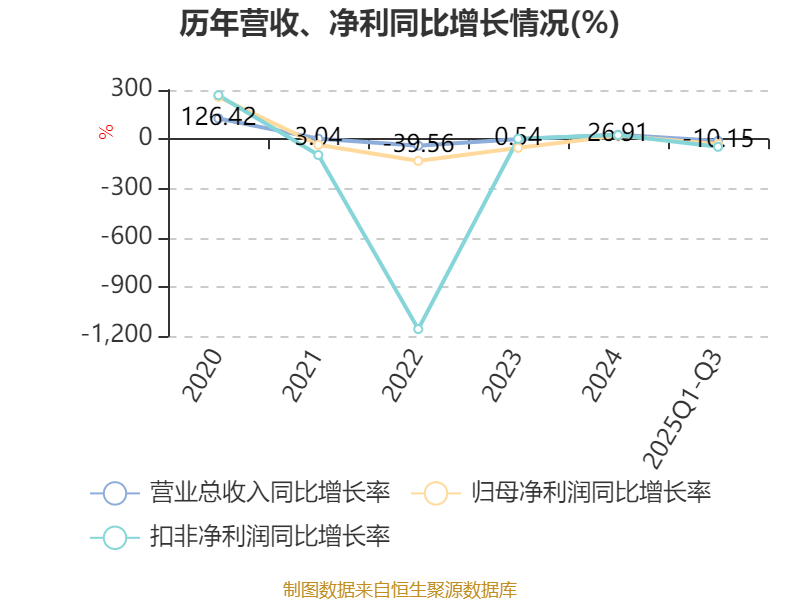 资产重大变化方面,截至2025年三季度末,公司货币资金较上年末减少30.57%,占公司总资产比重下降3.39个百分点;交易性金融资产合计较上年末增加167.22%,占公司总资产比重上升3.24个百分点;固定资产较上年末减少7.06%,占公司总资产比重下降1.32个百分点;商誉较上年末增加1.91%,占公司总资产比重上升0.93个百分点。