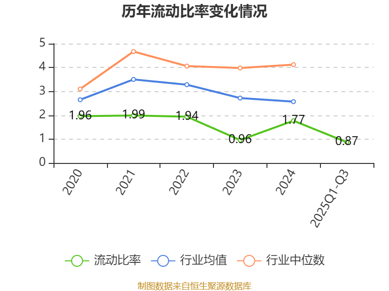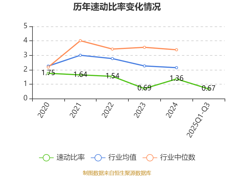 2025年前三季度,公司流动比率为0.87,速动比率为0.67。