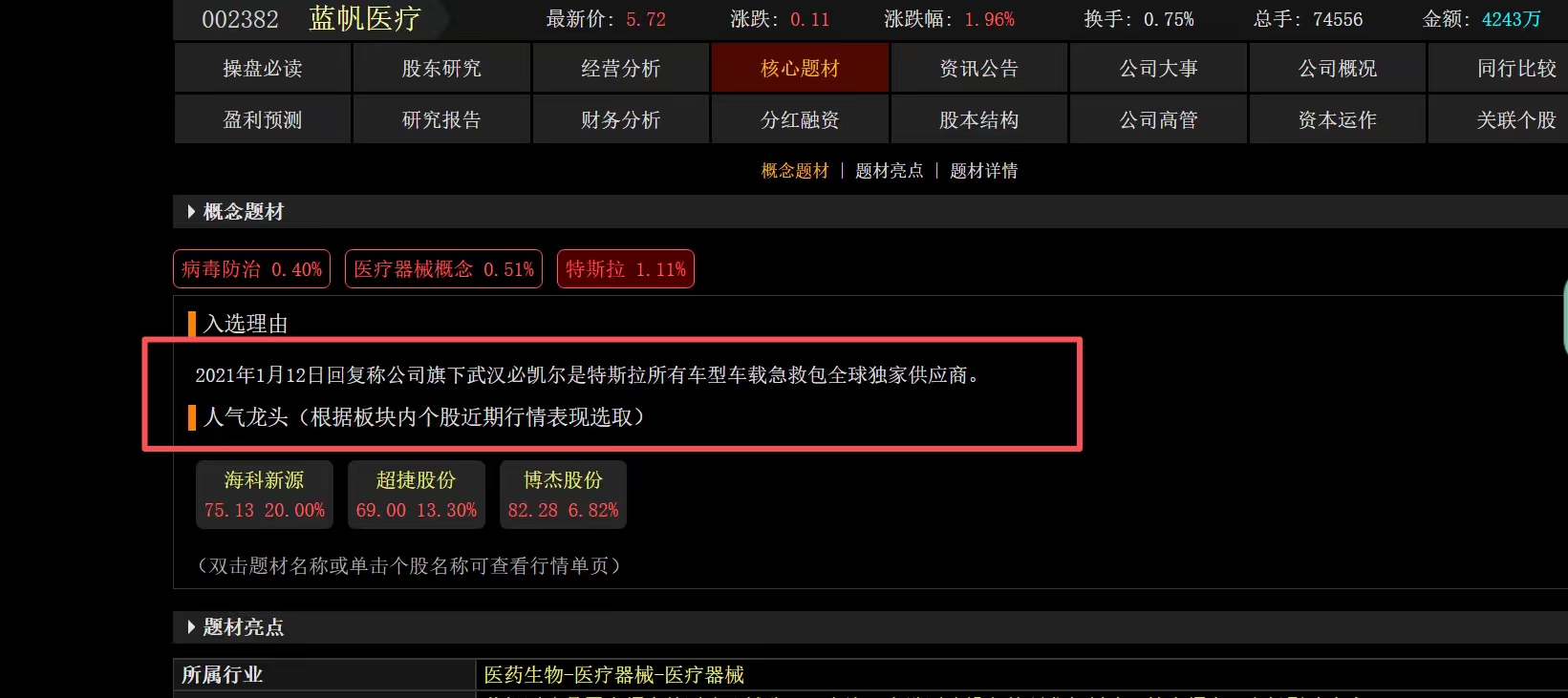 公司旗下武汉必凯尔是特斯拉所有车型车载急救包全球独家供应商