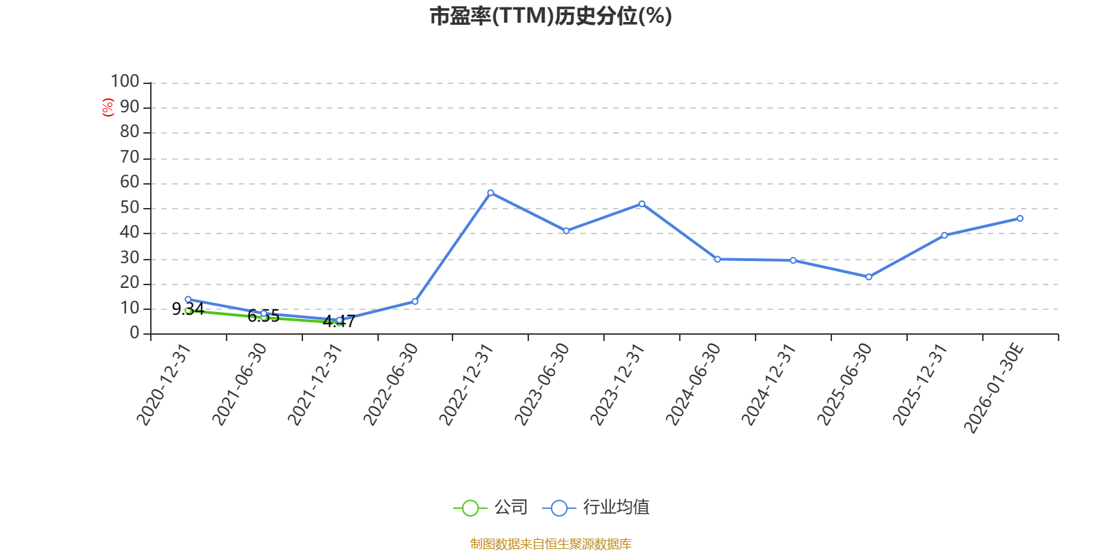 以本次披露业绩预告均值计算,公司近年市盈率(TTM)图如下所示: