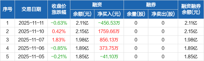 合众思壮:融资净偿还456.53万元,融资余额2.11亿元(11-11)