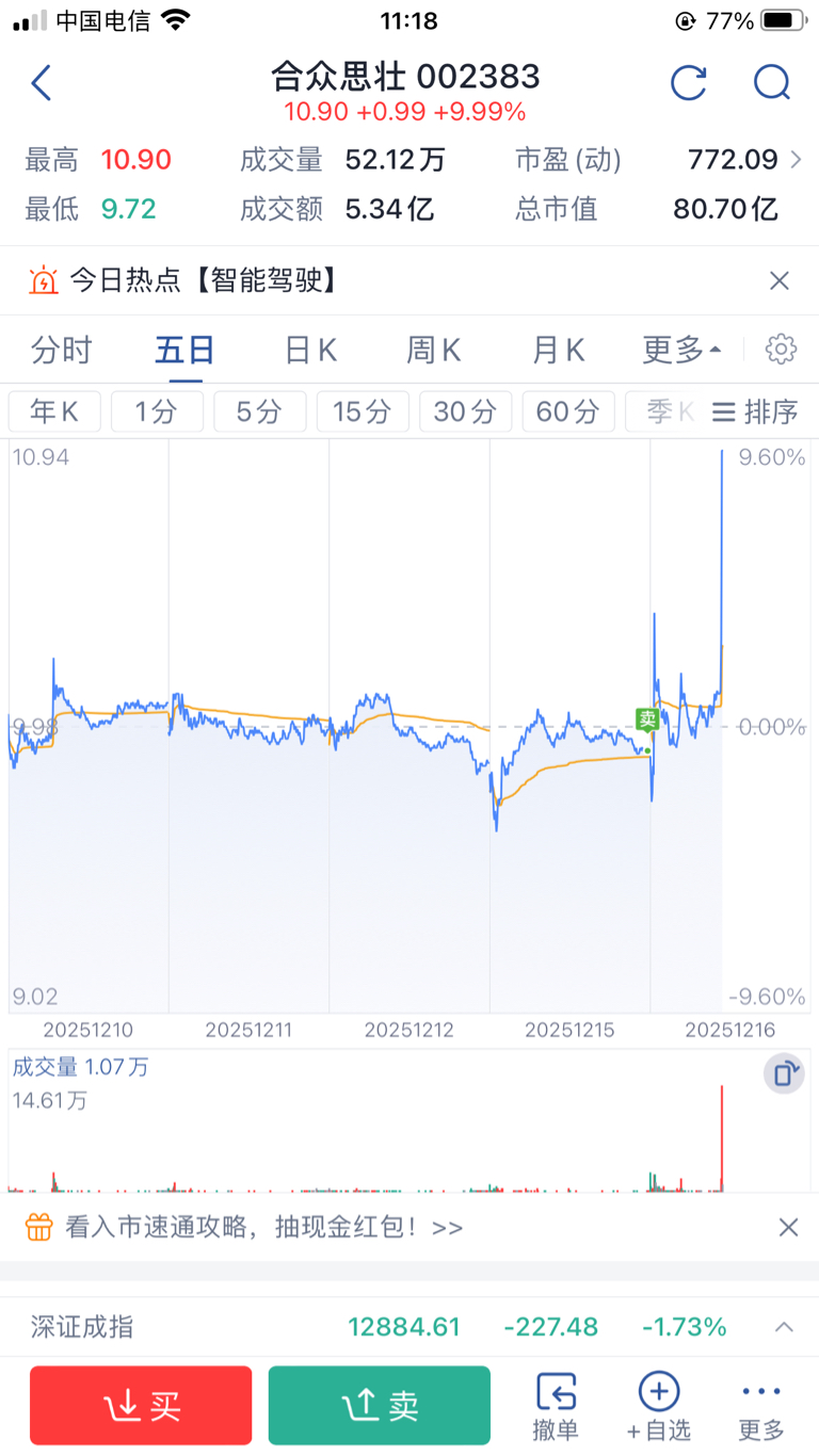 $合众思壮(SZ002383)$ 我割肉你涨停,没割肉的跌4~5个点