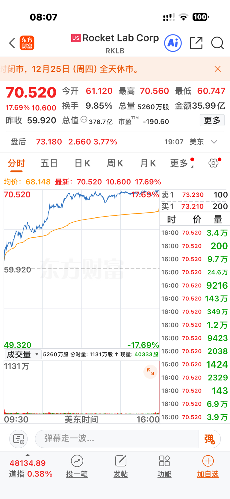 美股航天卫星导航大涨
