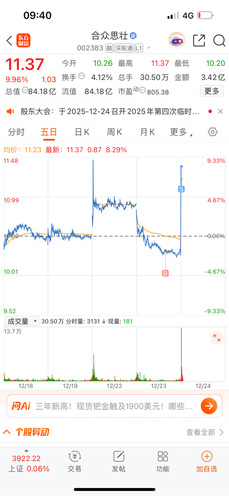 $合众思壮(SZ002383)$ 打板亏,只能低吸回血了