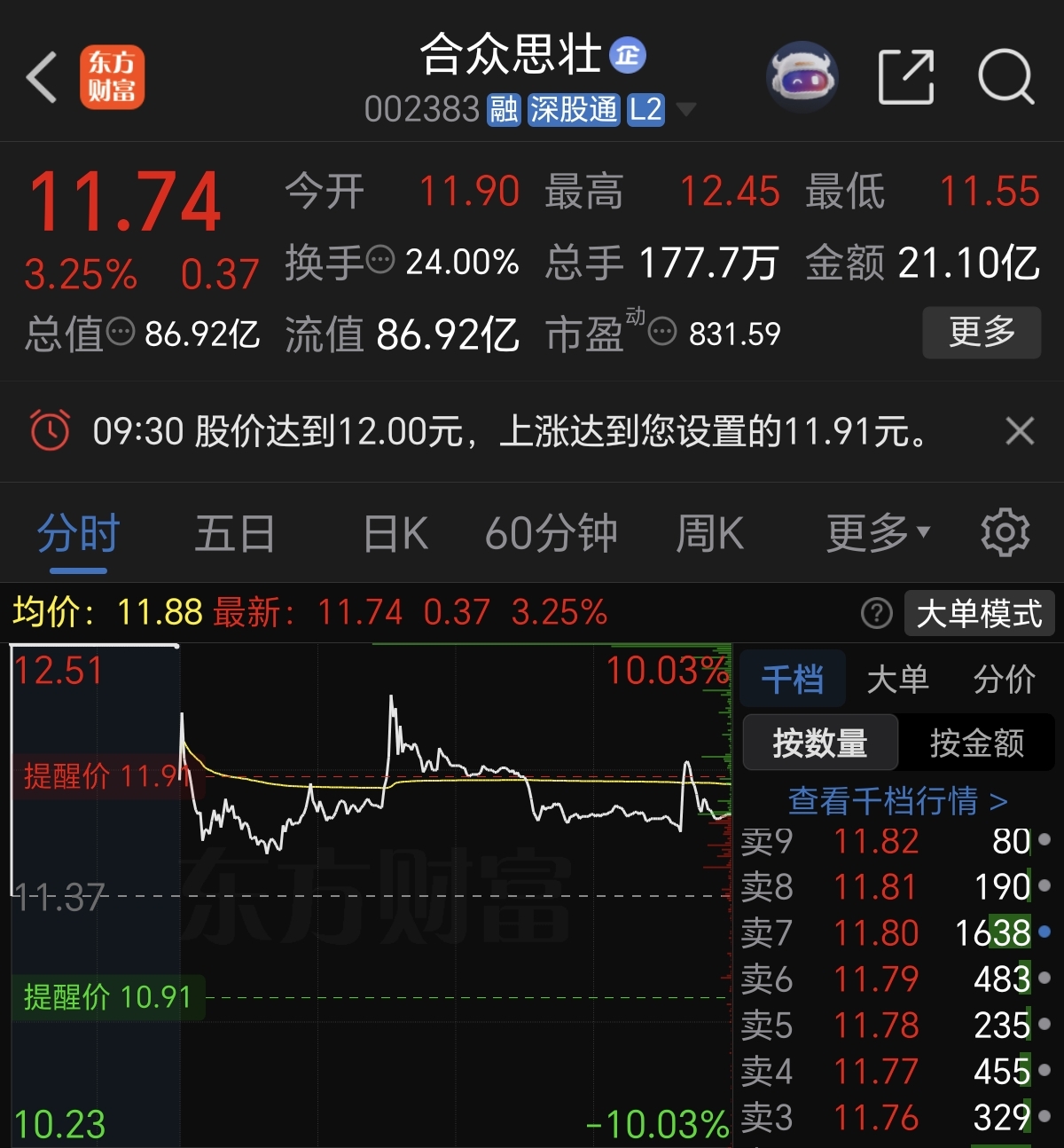 $合众思壮(SZ002383)$ 小时级别超买 主力吃了大部分筹码 所以明天摸完12下来?