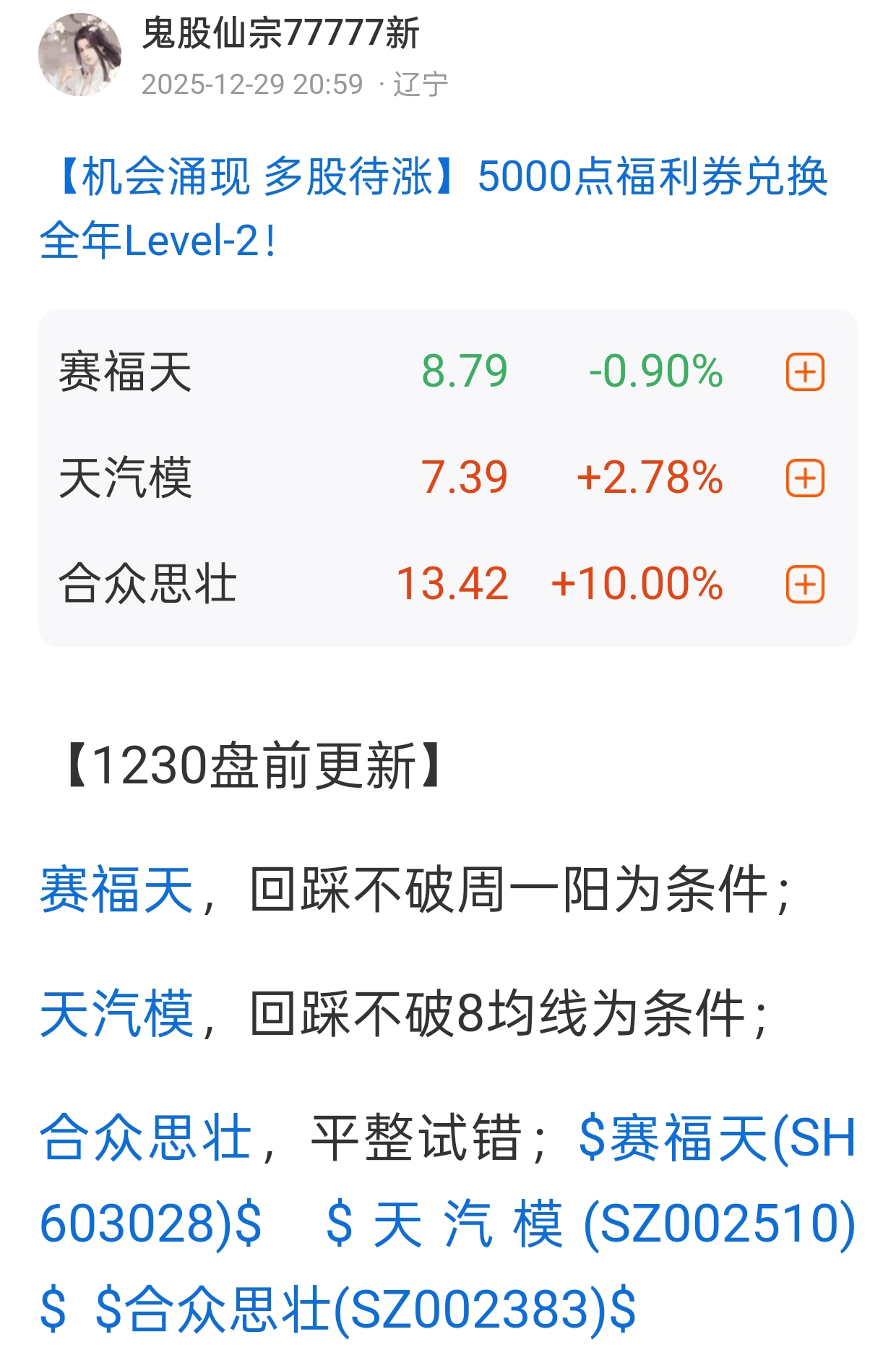 温馨提示: 1.根据《证券法》规定,禁止编造、传播虚假信息或者误导性信息,扰乱证券市场;2.用户在本社区发表的所有资料、言论等仅代表个人观点,与本网站立场无关,不对您构成任何投资建议。用户应基于自己的独立判断,自行决定证券投资并承担相应风险。《东方财富社区管理规定》