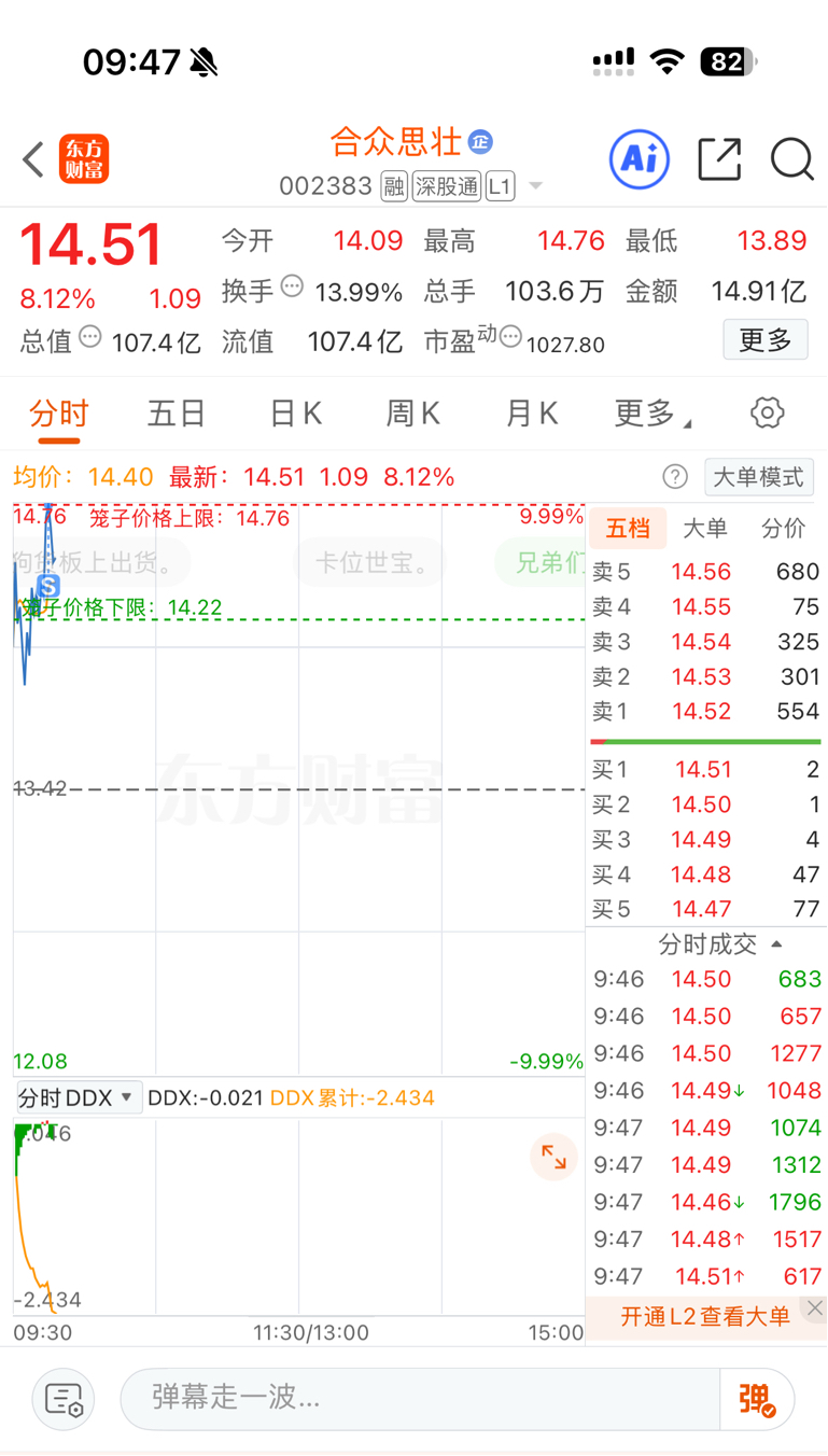 $合众思壮(SZ002383)$ 挂了涨停卖了,准备做个T