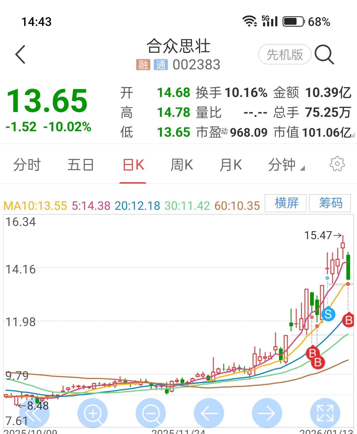 $合众思壮(SZ002383)$ 我又回来了 ,明天碰10日线往上走,