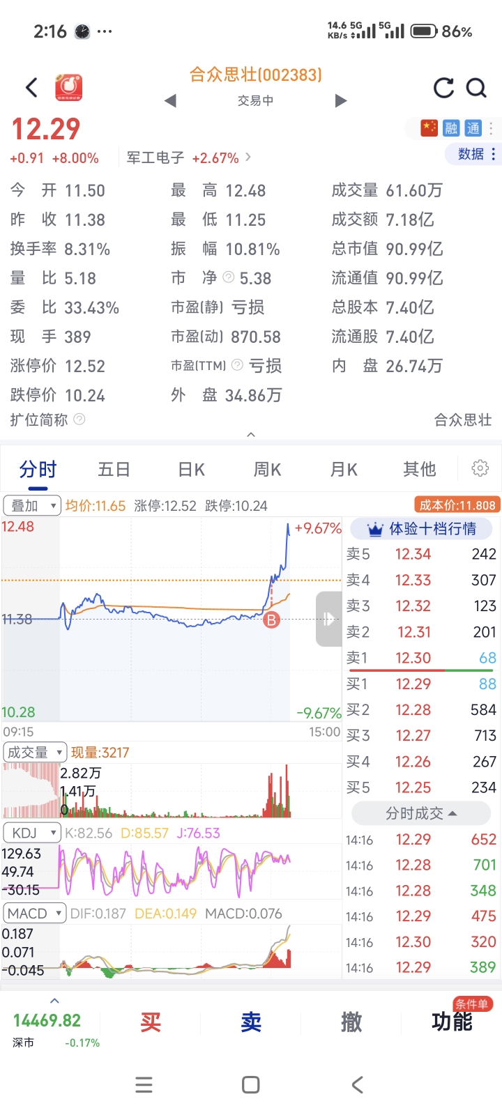 11.80梭哈了。本来想11.80梭哈烽火电子,一直没成交,无意见又看到,那就只