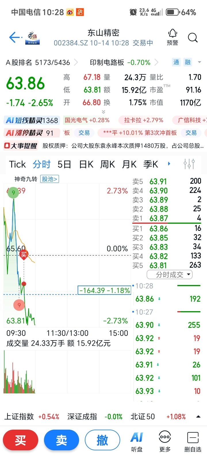 $东山精密(SZ002384)$ 今天买早了。。被套路了。。。