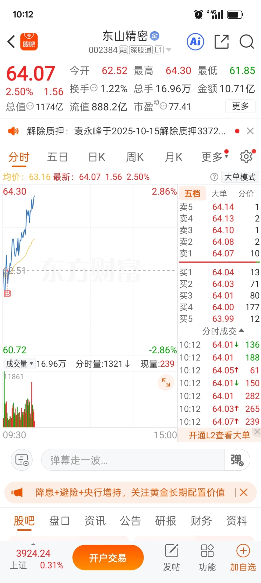 $东山精密(SZ002384)$ 本想解套的 结果涨了