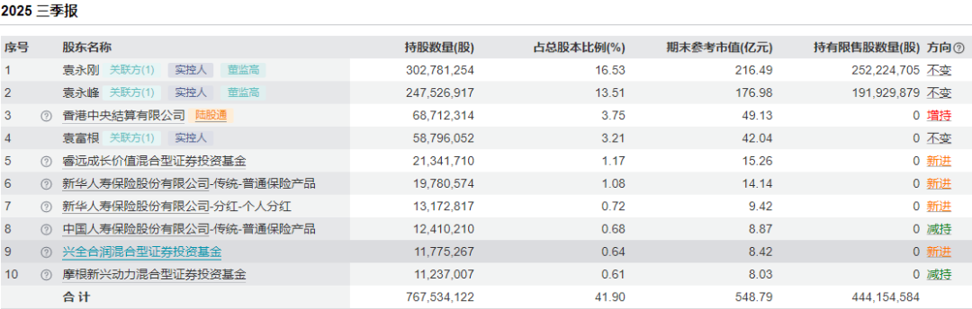 其中,睿远成长价值、兴全合润均为新进前十大股东,睿远成长价值三季度的持股数量由784.88万股增至2134.17万股,兴全合润是新进持有;摩根新兴动力三季度则是将持股数量由1246.84万股减少至1123.7万股。