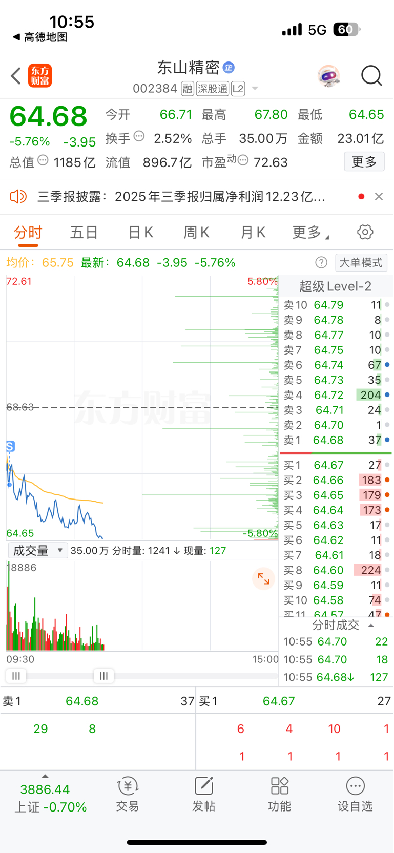 $东山精密(SZ002384)$ 昨天力度不行 出了一半回胜宏,今天直接割了回胜宏快赚回来了,等等再进 还要跌
