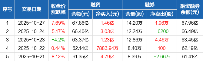 东山精密:融资余额67.86亿元,创历史新高(10-27)