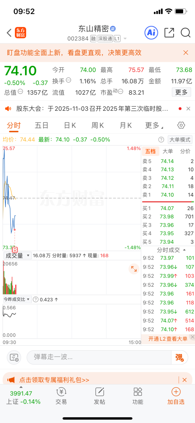 水下介入个股$东山精密(SZ002384)$ #强势机会# #实盘记录# #投资干货# #投资随笔#