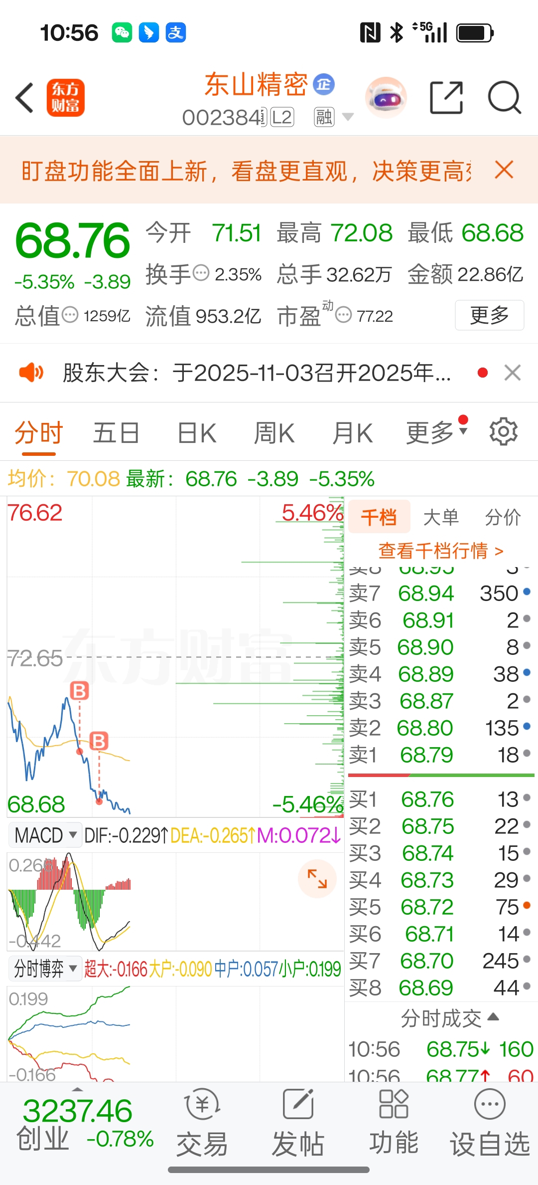$东山精密(SZ002384)$ 抄底抄到半山腰