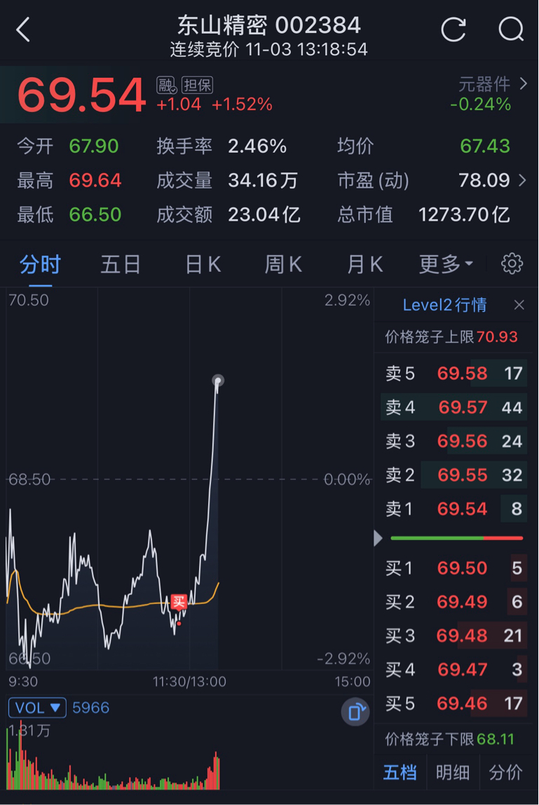 $东山精密(SZ002384)$ 来了老弟