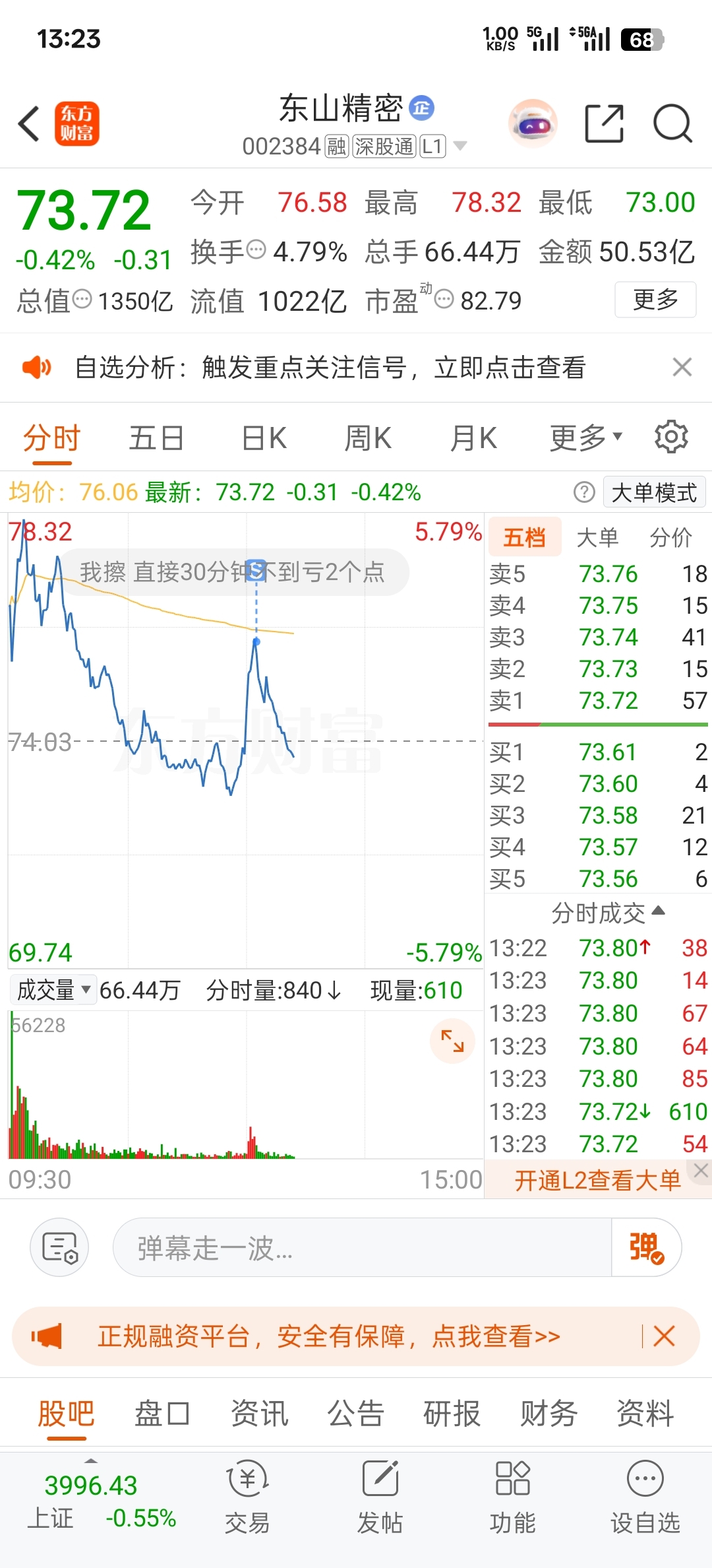 $东山精密(SZ002384)$ 算了,怕了你,早盘6个点没走,现在走了