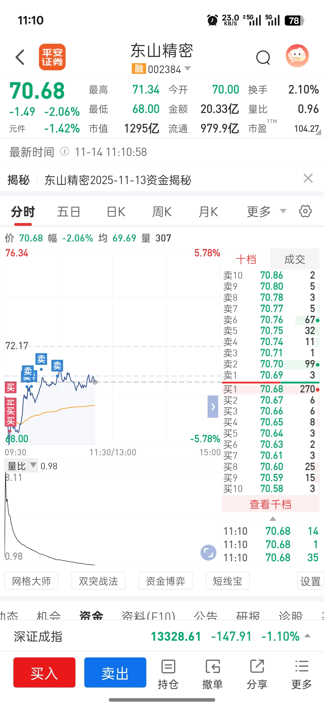 $东山精密(SZ002384)$ 你们加油,争取泛红,今天目前红了200块,