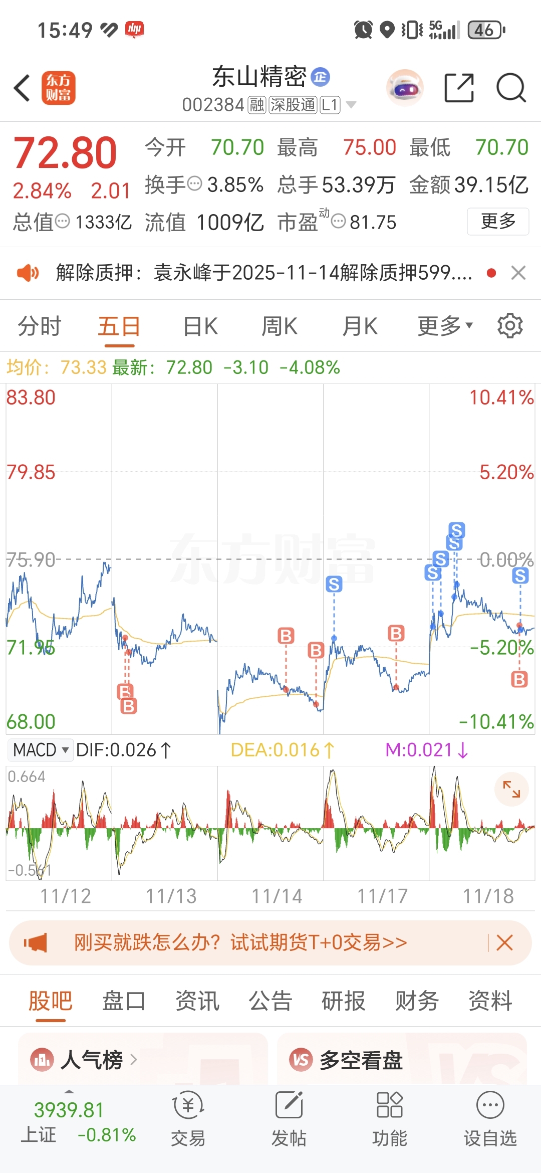 $东山精密(SZ002384)$ 忍不住,每天想操作,怎么办,
