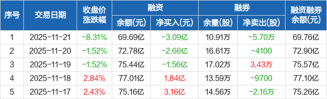 东山精密:融资净偿还3.09亿元,两市排名第八(11-21)