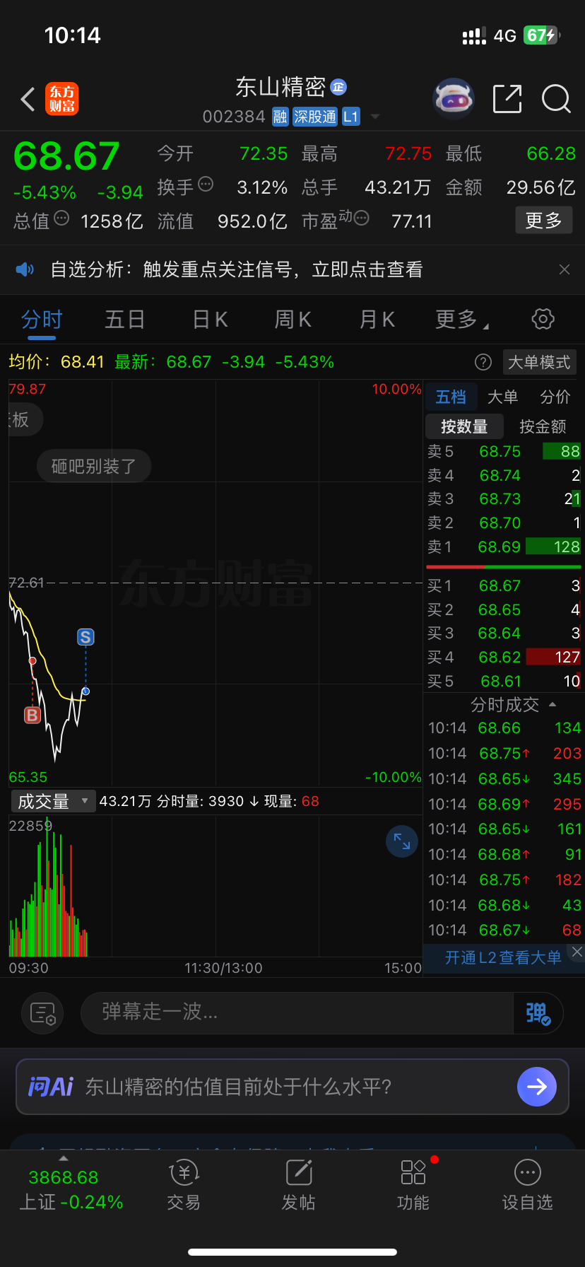 $东山精密(SZ002384)$ 认输,这个股就没赚过钱