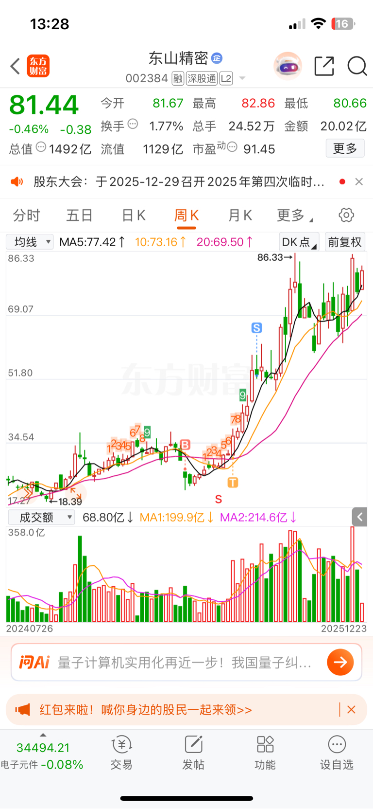 $东山精密(SZ002384)$ 悔不当初卖早了,不然躺赢