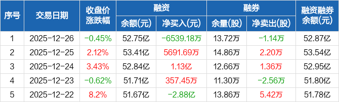 东山精密:融资净偿还6539.18万元,融资余额52.75亿元(12-26)