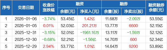 东山精密:融资净买入1.42亿元,融资余额53.45亿元(01-06)