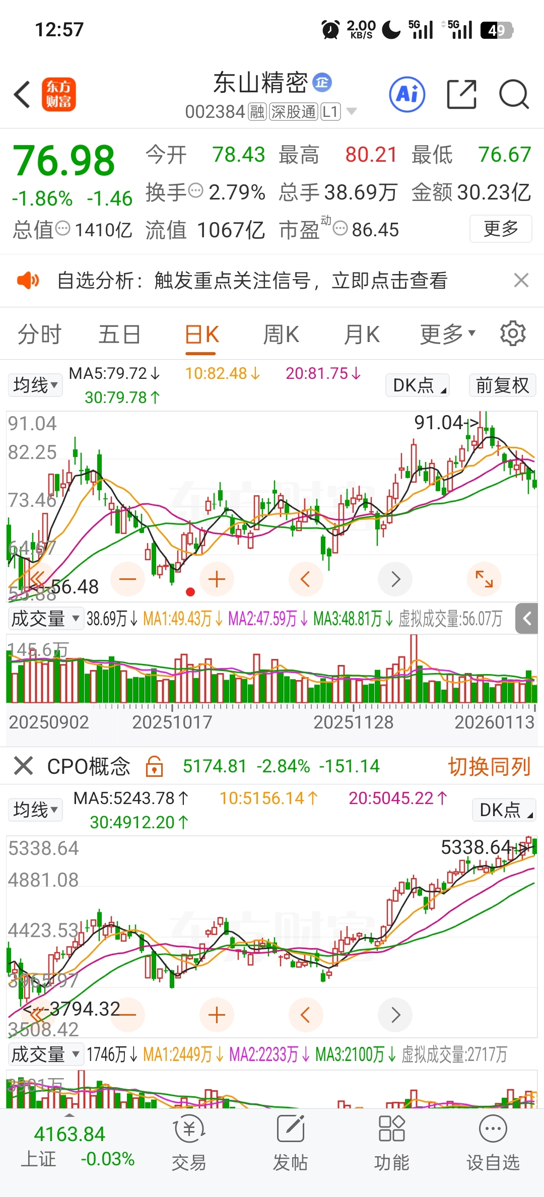 $东山精密(SZ002384)$ 主打一个独立下跌行情