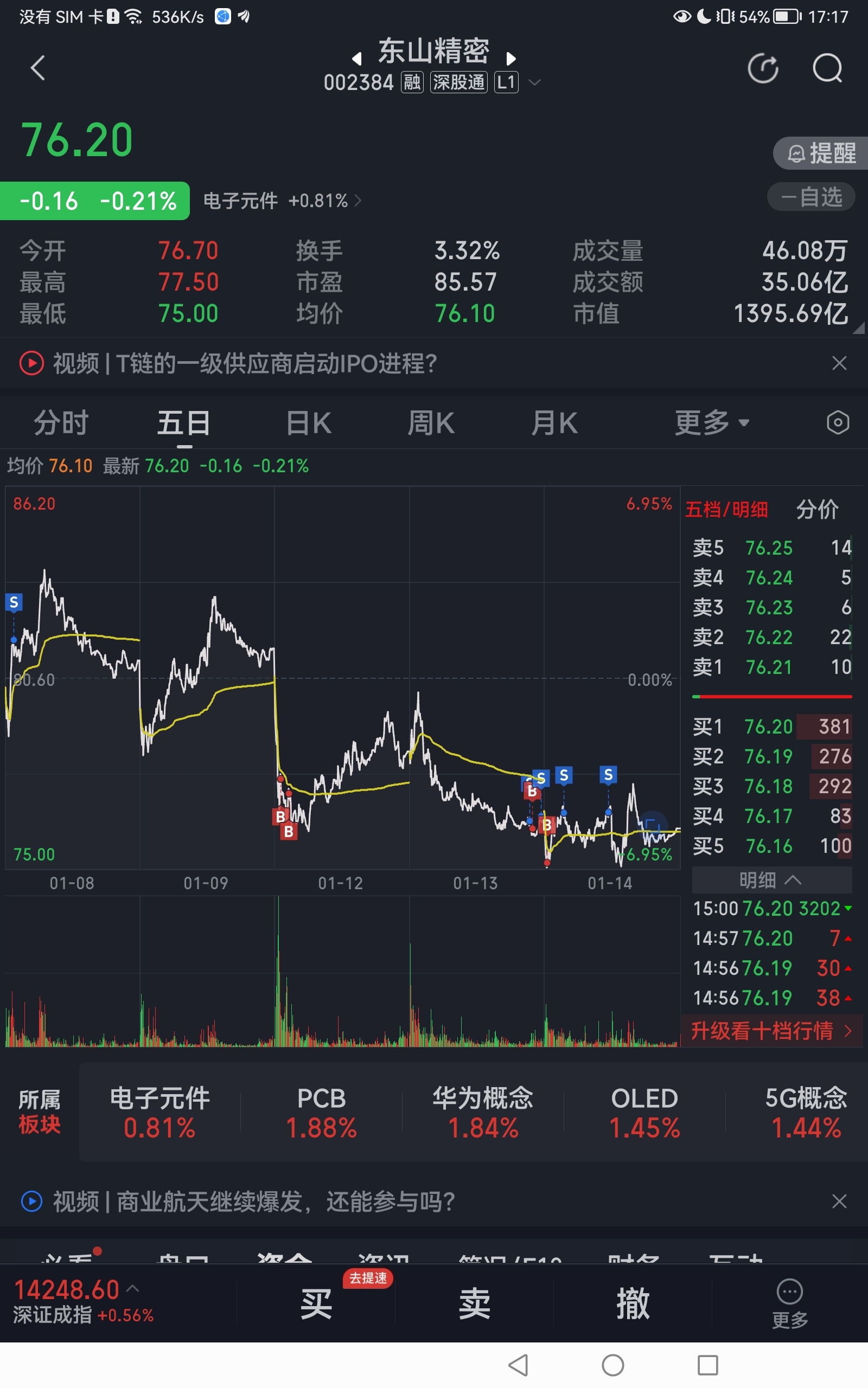 $东山精密(SZ002384)$ 做T也不容易啊!