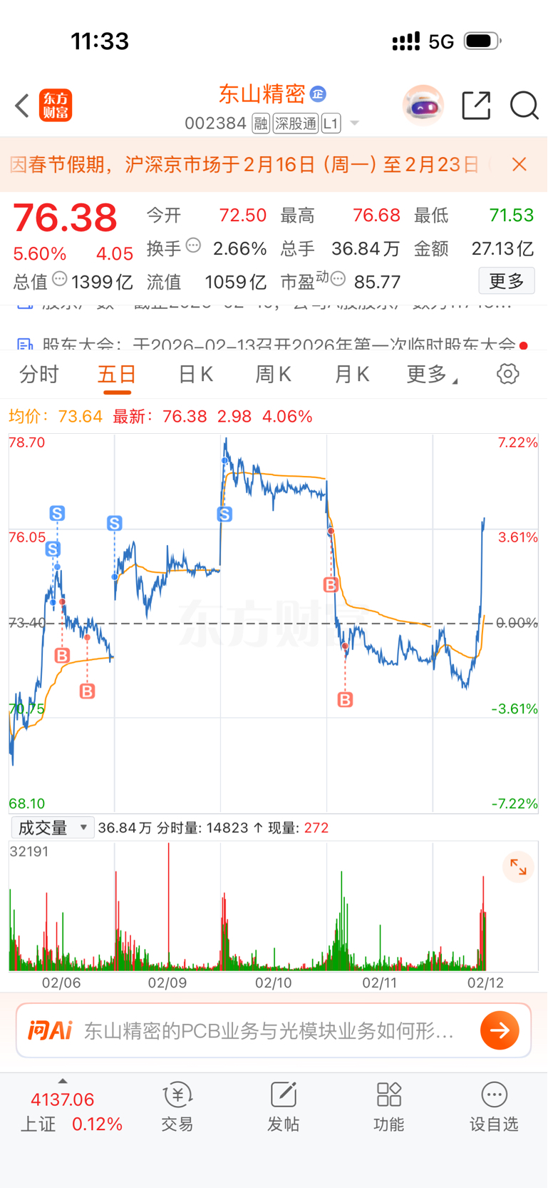 $东山精密(SZ002384)$ 真不能贪啊这个股,希望今天能拉到78给我减减仓