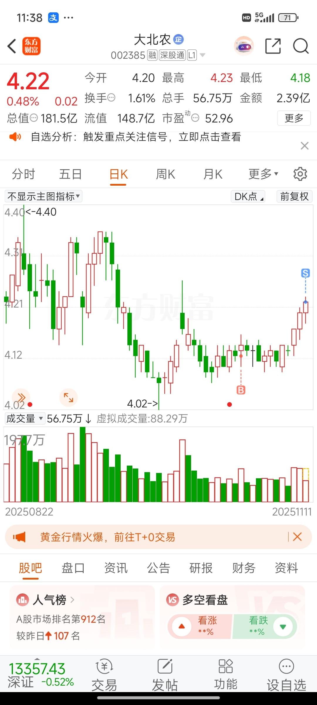 $大北农(SZ002385)$ 不看好年尾行情,逐步清仓