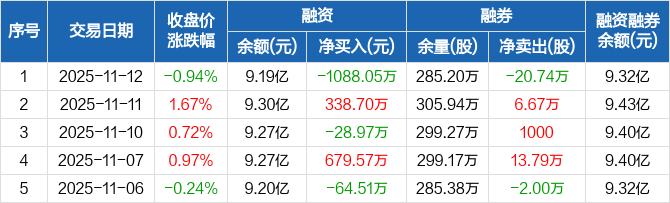 大北农:融资净偿还1088.05万元,融资余额9.19亿元(11-12)