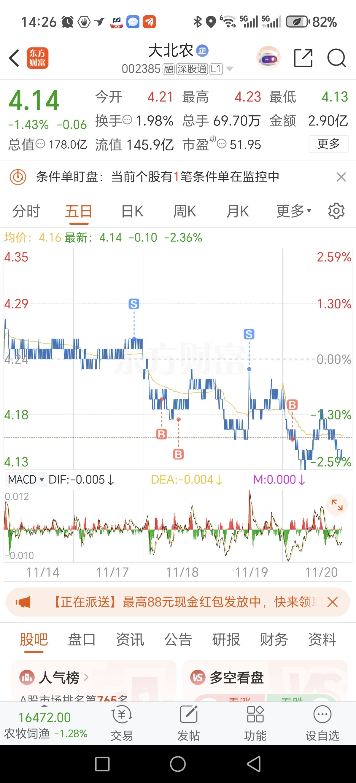 $大北农(SZ002385)$  买这只票就得三分二分的做T,除非不看盘半年打开看看
