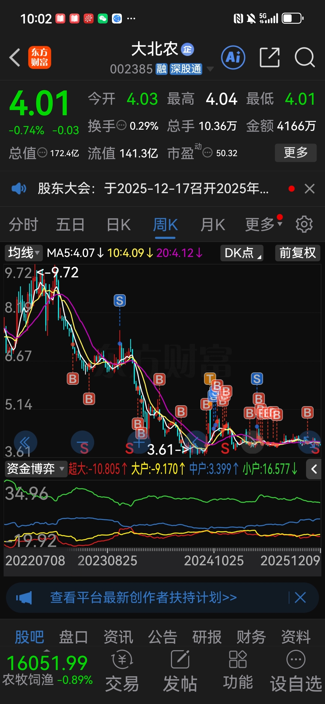 $大北农(SZ002385)$ 不想不跌没有什么意思,不加仓了