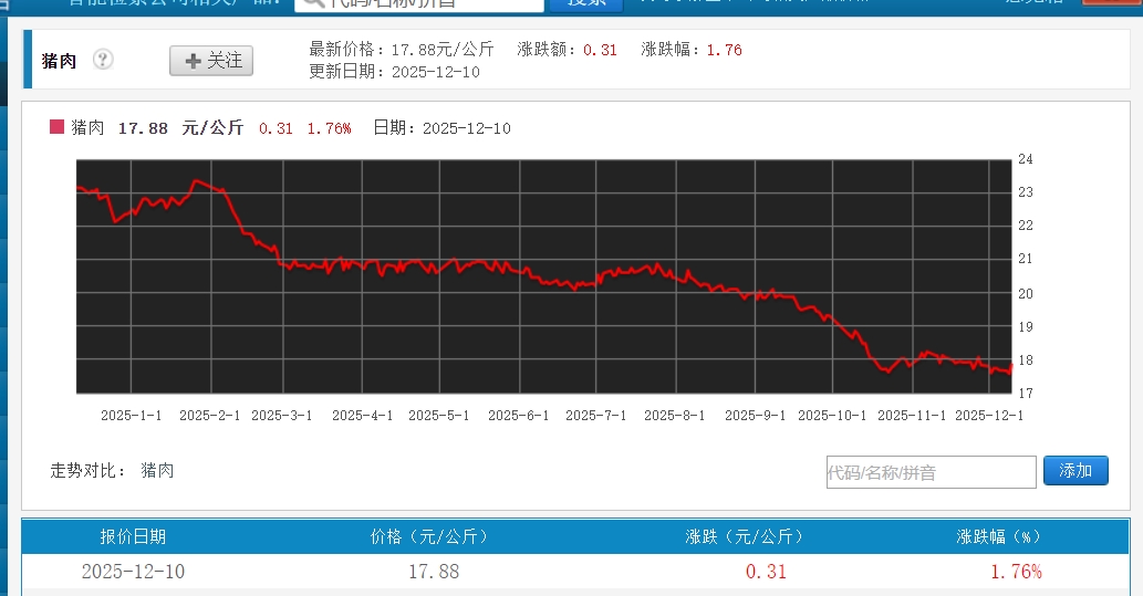 $大北农(SZ002385)$ 猪肉价格昨日涨了1.76%底部反转
