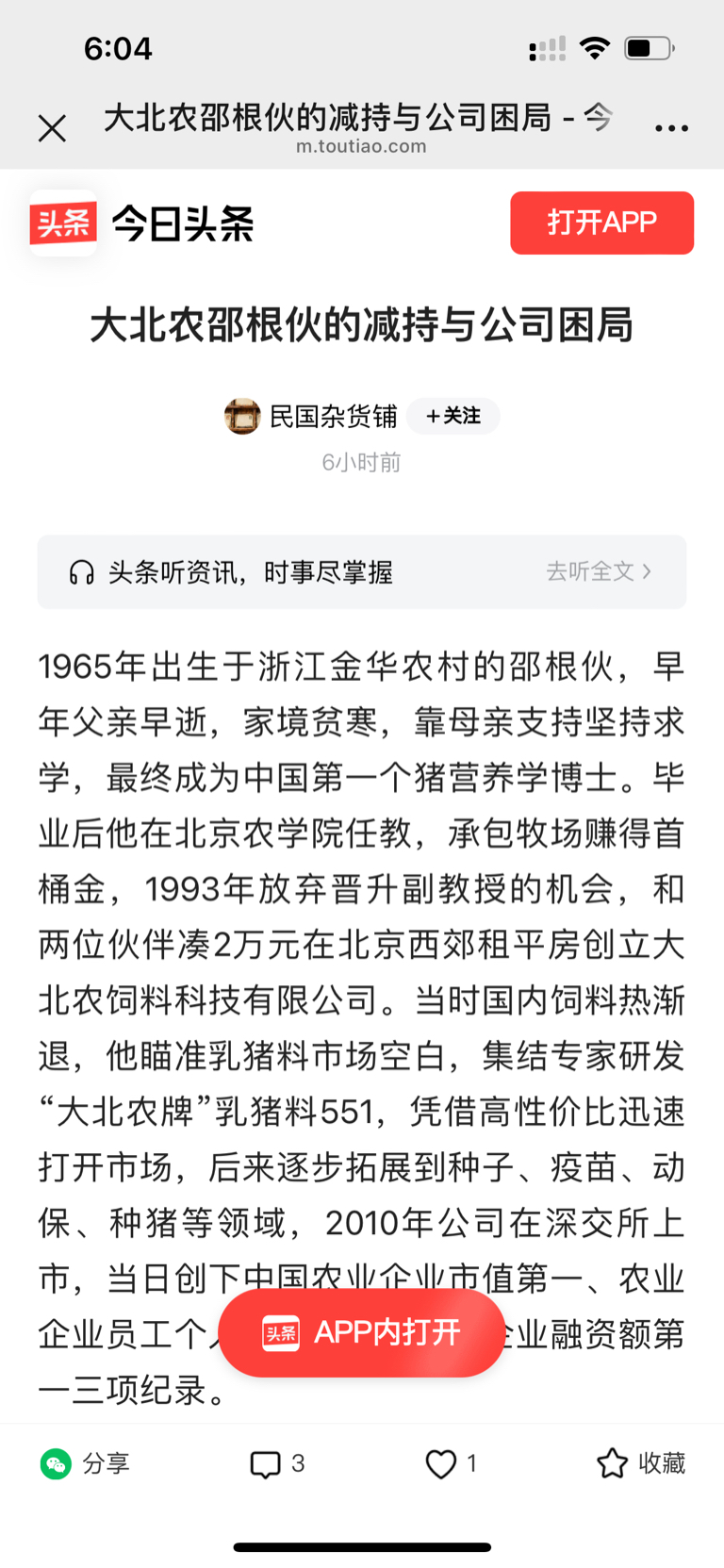 $大北农(SZ002385)$ 头条小作文