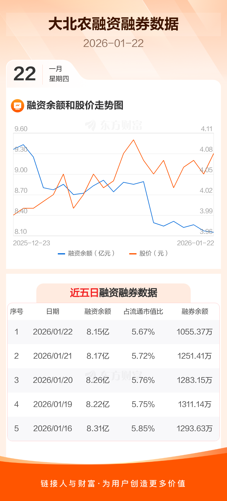 交易所最新数据显示,大北农于2026年1月22日获融资买入2641.77万元,融资偿还2784.60万元,当日融资净偿还142.83万元。目前,该股融资余额8.15亿,占流通市值比例为5.67%。