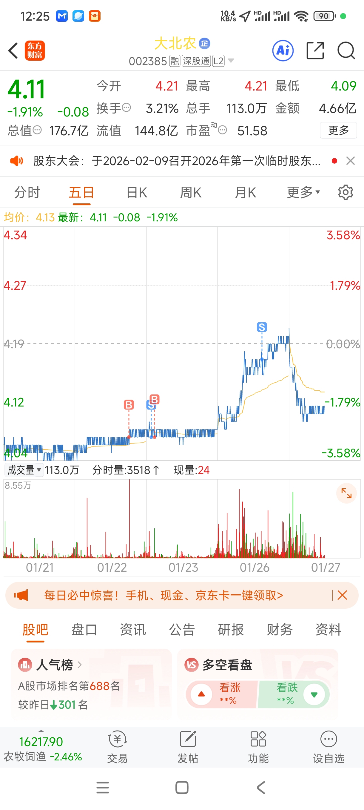 $大北农(SZ002385)$ 你格局什么……下来我做T