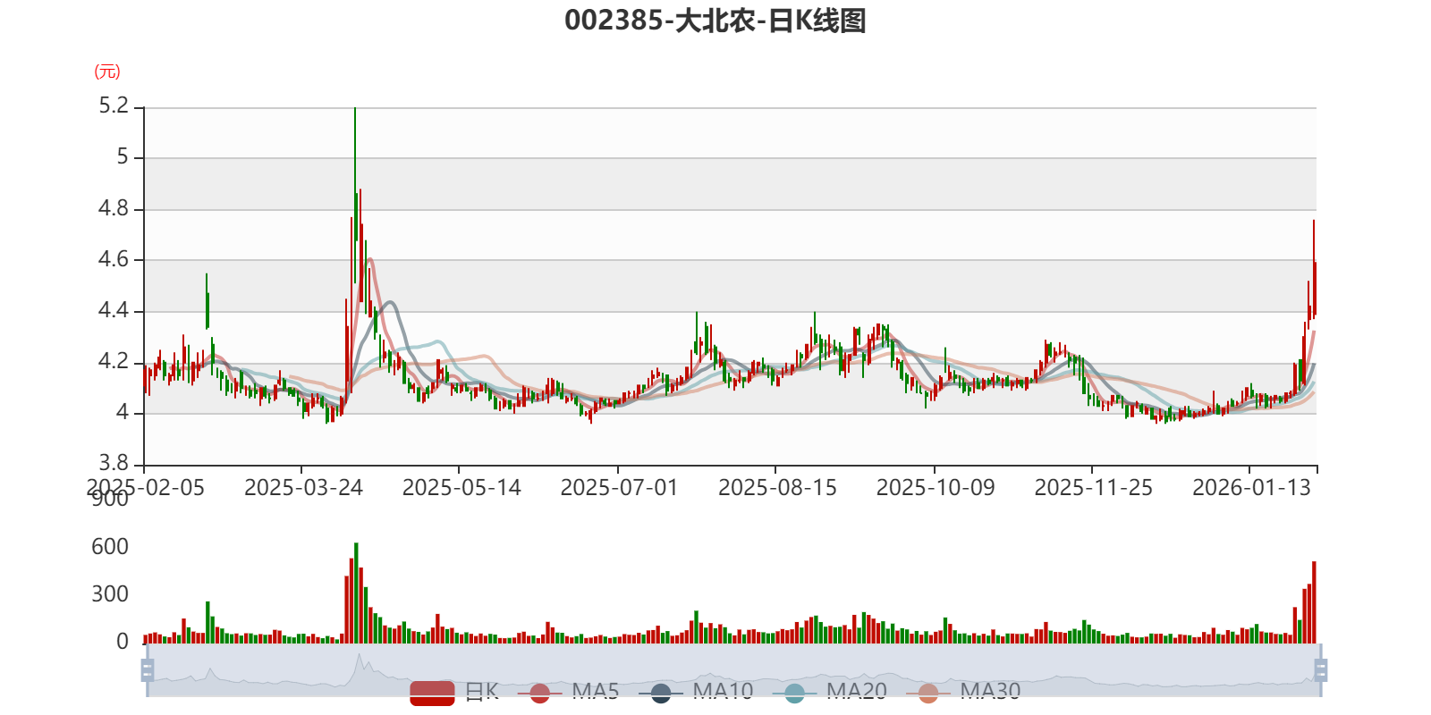 中证智能财讯大北农(002385)1月30日晚间披露2025年度业绩预告,预计2025年归母净利润亏损4.5亿元至5.8亿元,上年同期盈利3.46亿元;扣非净利润亏损5.9亿元至7.2亿元,上年同期盈利2.21亿元;基本每股收益-0.11元/股至-0.14元/股。以最新收盘价计算,市净率(LF)约2.3倍,市销率(TTM)约0.67倍。