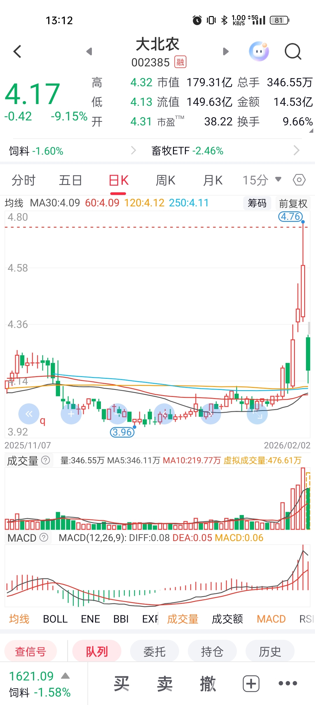 截图里虚线 4.73 是成本价哈。