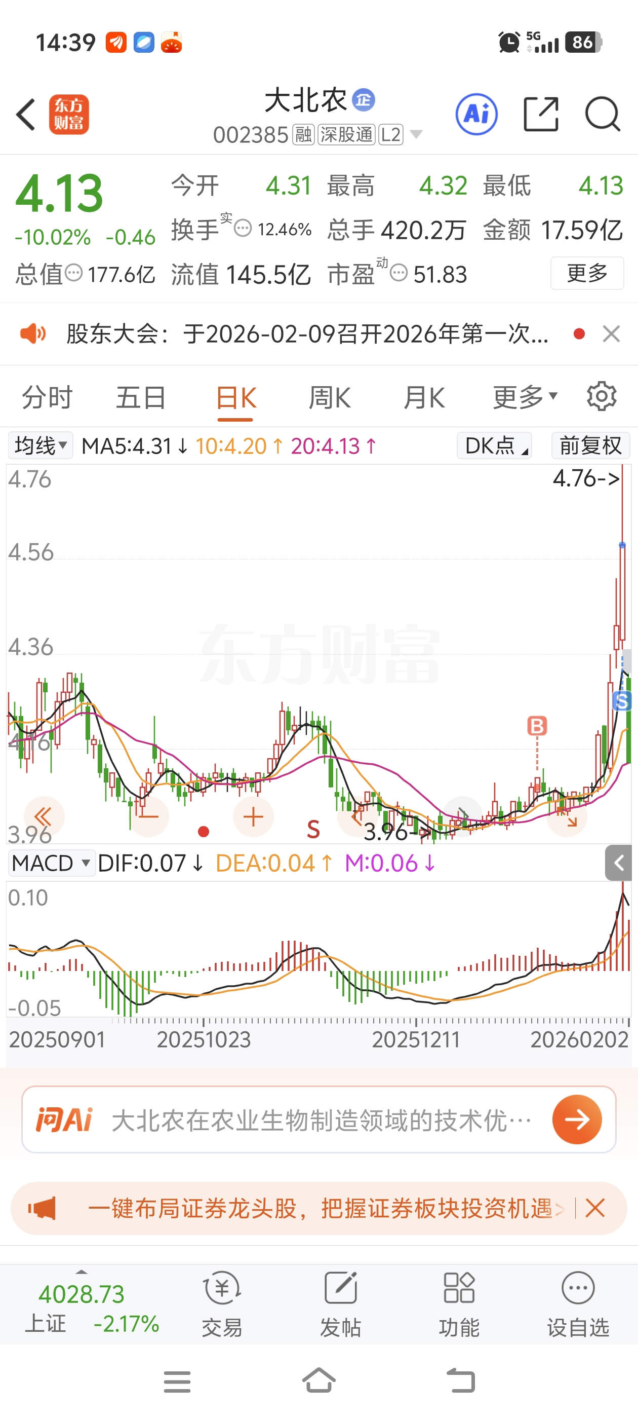 $大北农(SZ002385)$ 跌停板先买2成仓,老规矩后续跌就补涨就等着卖