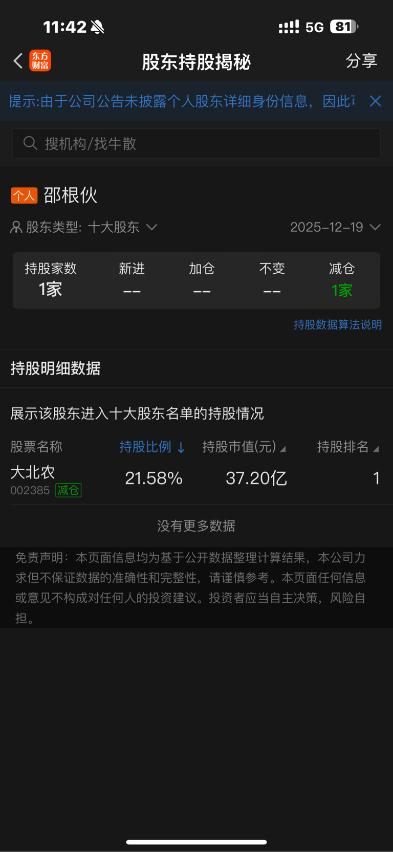 $大北农(SZ002385)$ 这哥们连续六年减仓市值的四分之一…真是卖公司来了,牛