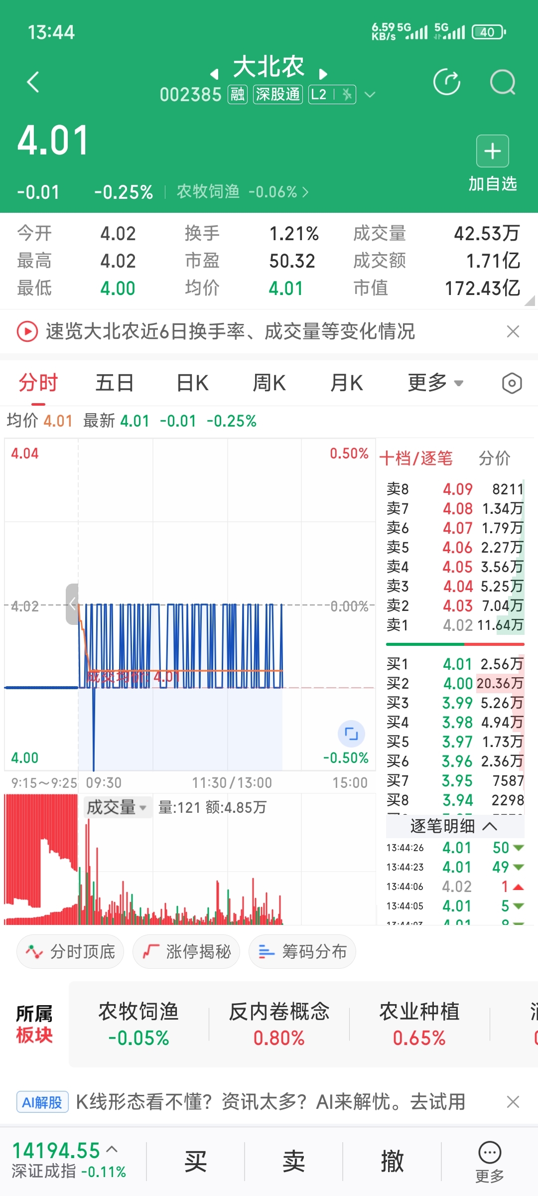 $大北农(SZ002385)$ 主力在秀控盘技术吗?