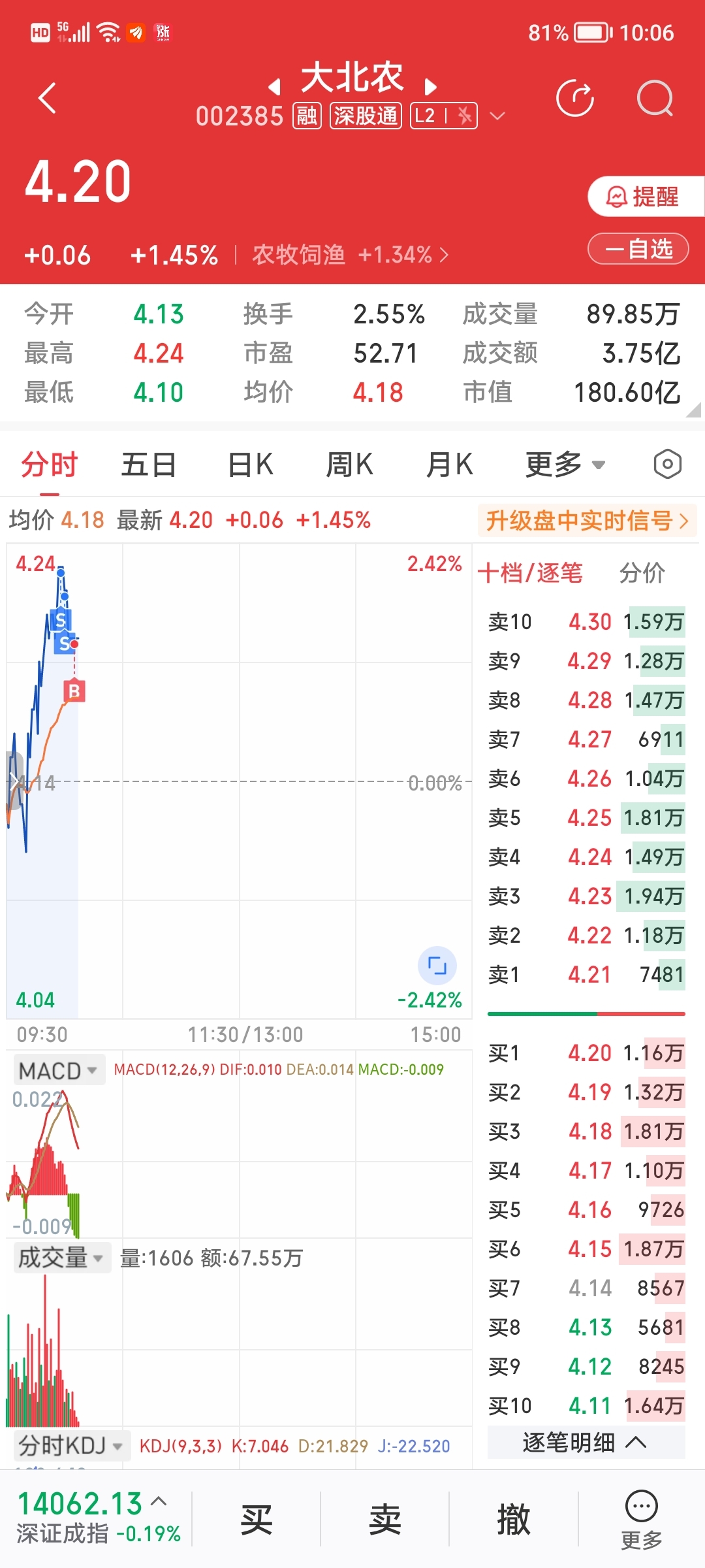$大北农(SZ002385)$ 早上4.1不敢补仓现在只能4.2接回来部分了